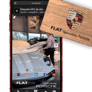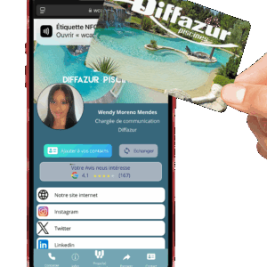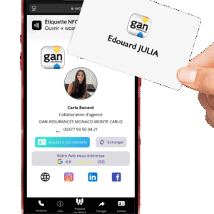 Offrez-la à vos clients ou prospects : en la badgant, ils découvriront une Wcard Up à votre nom, avec vidéo d’intro et toutes vos coordonnées qu’ils pourront enregistrer en un clic 📱.